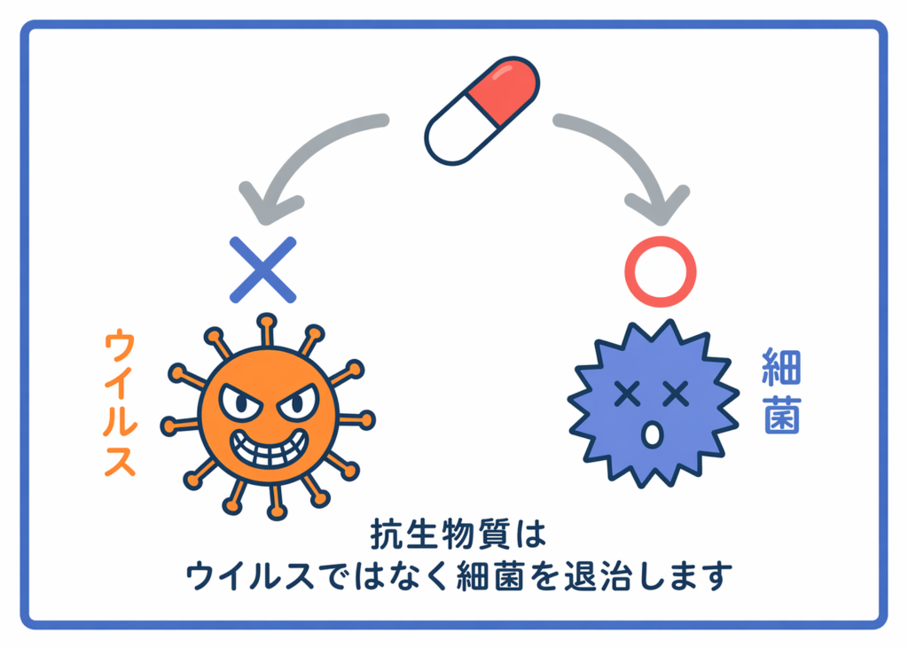 しかし、それは**「抗生物質のおかげで治った」のではなく、「抗生物質を飲んでいる間に、体の免疫力が自然にウイルスを退治した」**と考えるのが正確です。