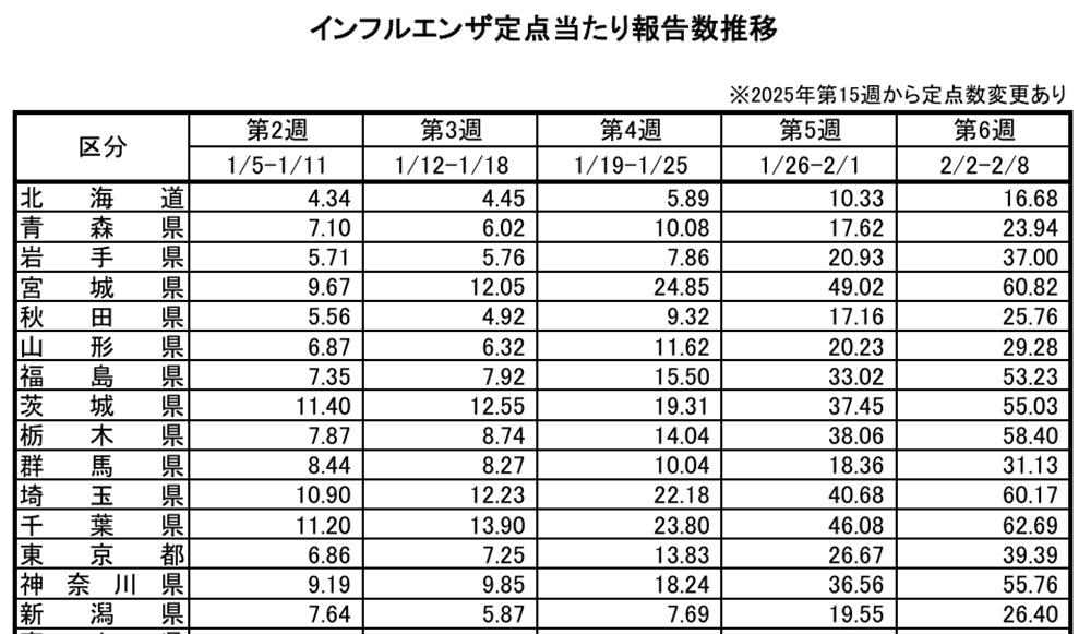 2026年2月16日、厚生労働省は最新のインフルエンザ発生状況を公表しました。