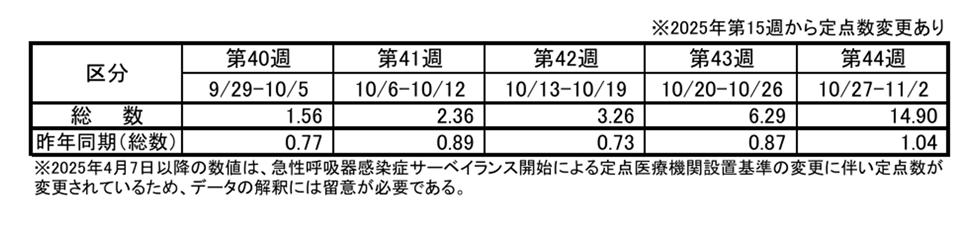 💡 “定点あたり報告数”が10を超えた頃が、いわば**「流行のサイン」**。