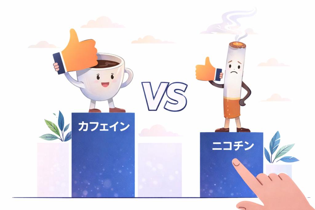 カフェイン依存とニコチン依存は、同じ「依存」という言葉で語られがちですが、