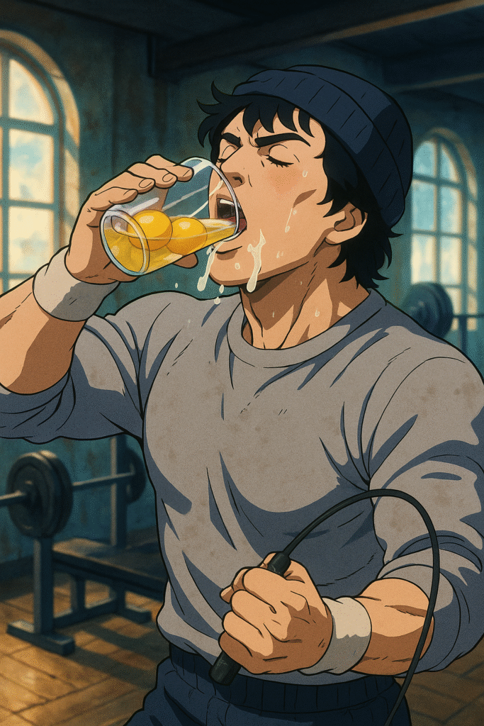 映画『ロッキー』で、主人公ロッキーが生卵をジョッキで一気飲みするシーンがあります。