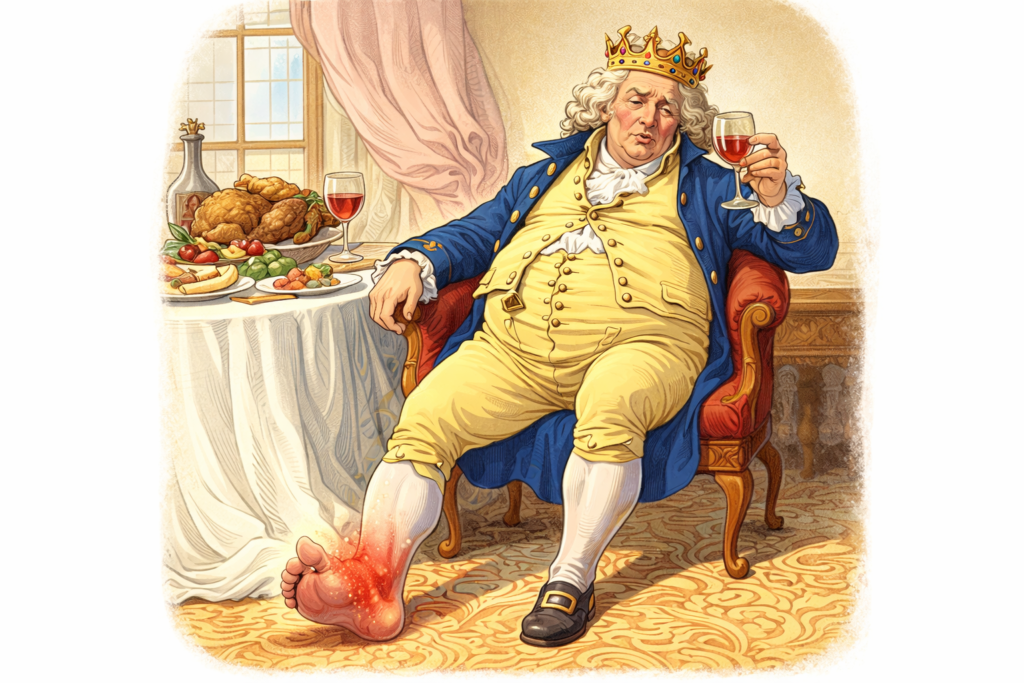 痛風が「王様の病気」と呼ばれたのは、昔の上流階級が“痛風になりやすい条件”をそろえやすかったから。